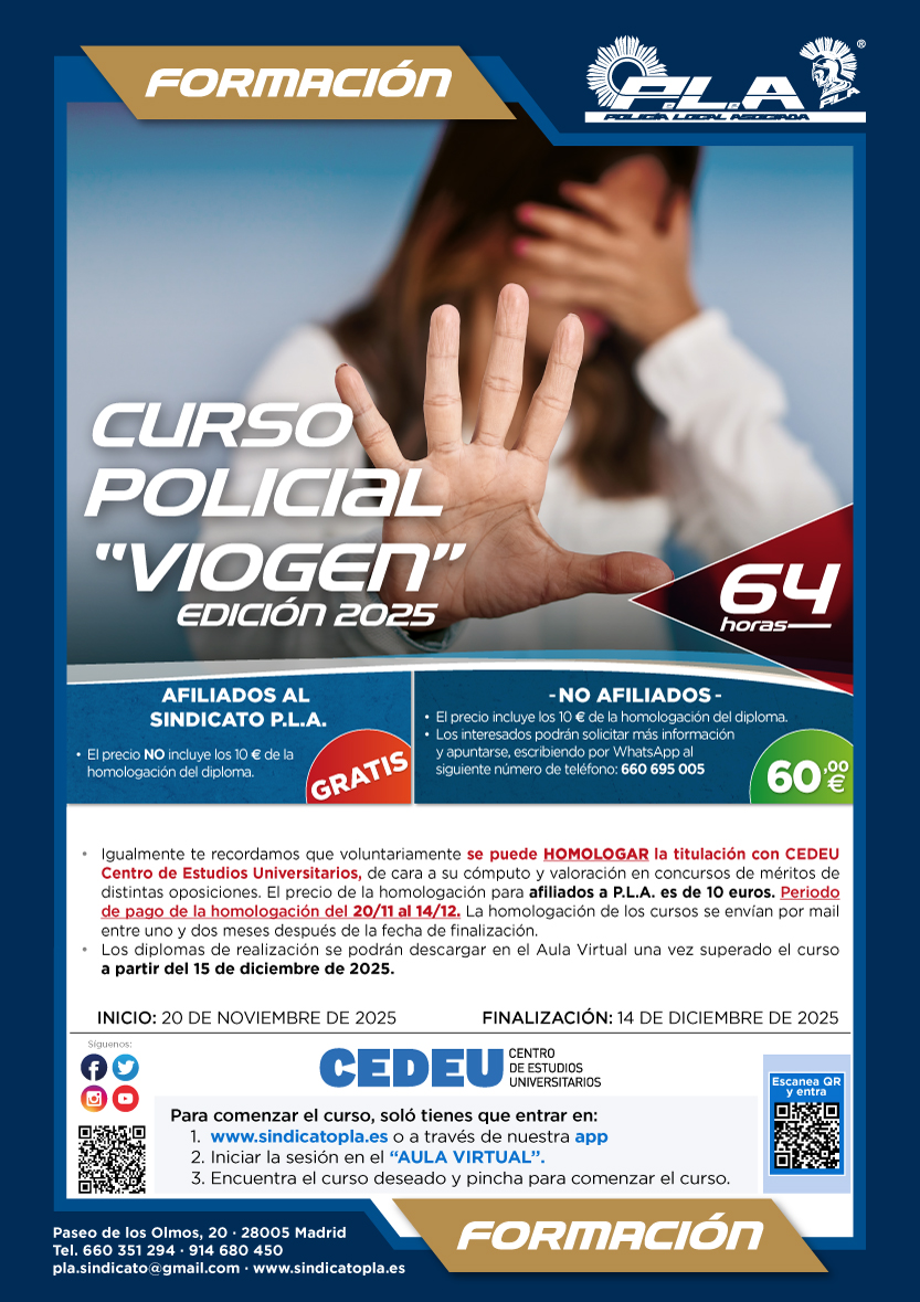• Este curso es válido para justificar la formación obligatoria que regula el Acuerdo de Policía Municipal de Madrid.