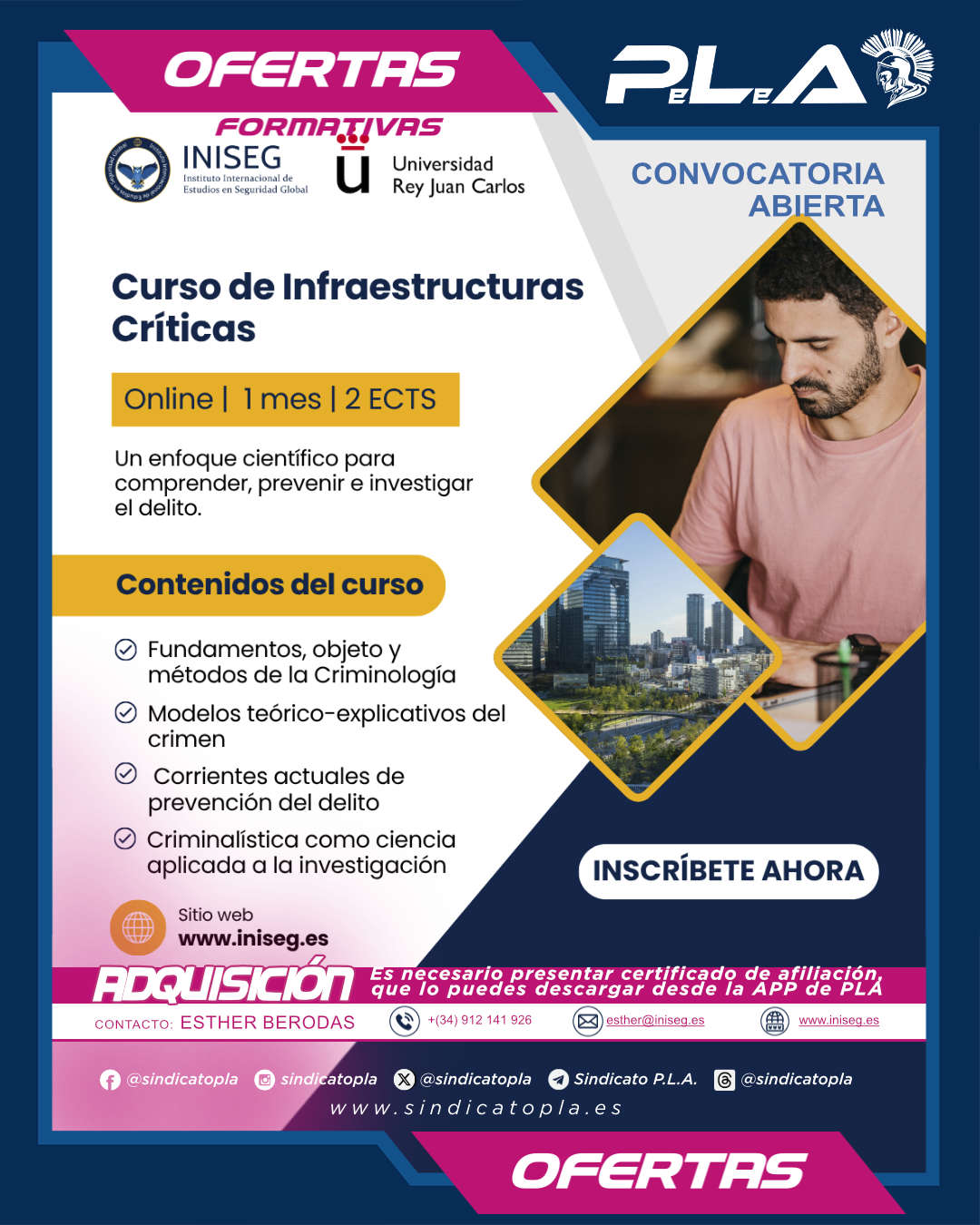 🎓La protección de las infraestructuras críticas es fundamental para el correcto funcionamiento de los servicios básicos de la sociedad (luz, gas, transportes, agua …). Su protección es responsabilidad de los operadores críticos a través de sus Departamentos de Seguridad, los cuales, utilizarán personal de seguridad con formación específica como la impartida en el curso